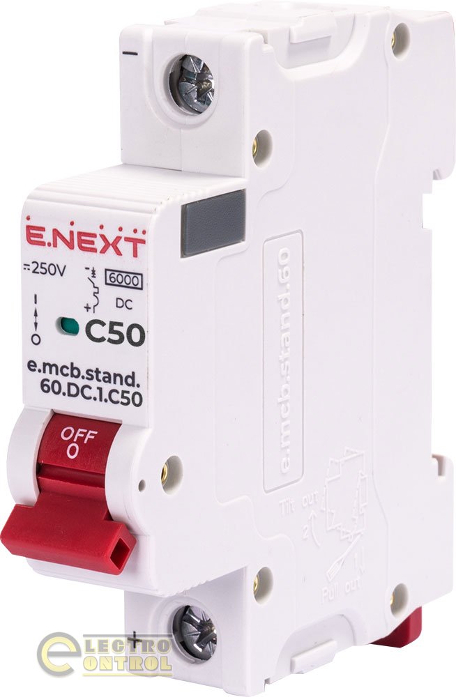 Модульный автоматический выключатель Enext s081011 e.mcb.stand.60.DC.1.C50 1р 50А C 6кА DC