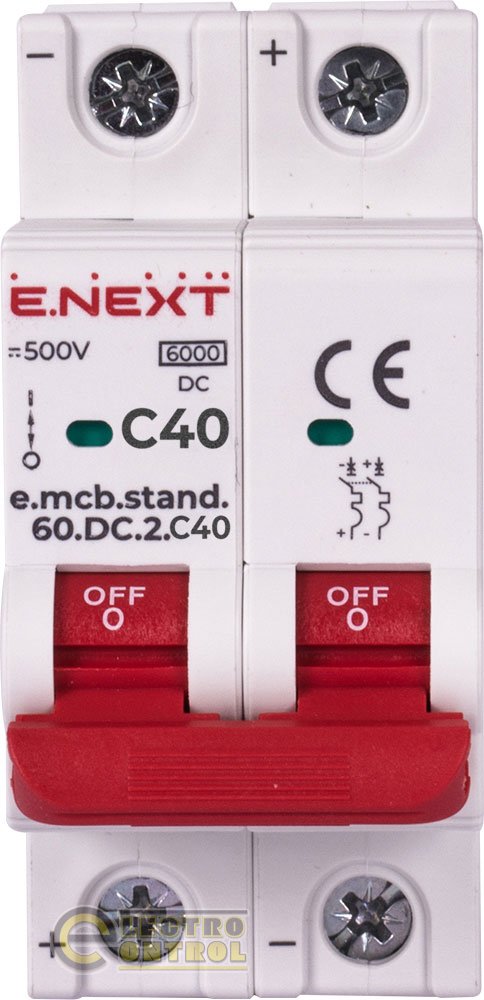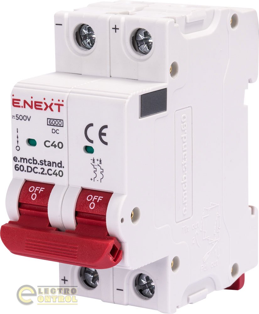Модульный автоматический выключатель Enext s081023 e.mcb.stand.60.DC.2.C40 2р 40А C 6кА DC