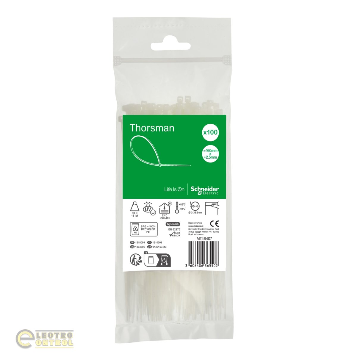 Хомут кабельный Thorsman IMT46407 160x2.5мм белый (100шт)