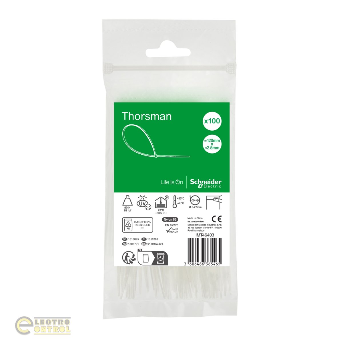 Хомут кабельный Thorsman IMT46403 120x2.5мм белый (100шт)