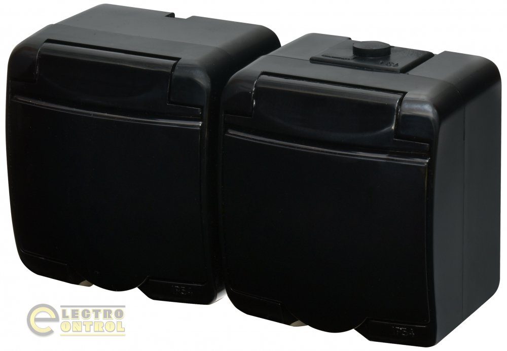 Розетка ETI 4668094 двойная с заземляющим контактом Schuko RHE-2s-BL IP54 чёрная крышка