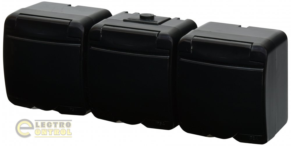 Розетка ETI 4668095 тройная с заземляющим контактом Schuko RHE-3s-BL IP54 чёрная крышка