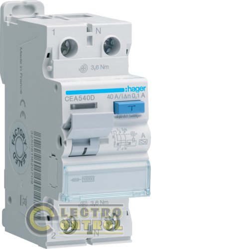 Устройство защитного отключения (УЗО) Hager CEA540D 2P 10kA 40A 100mA A