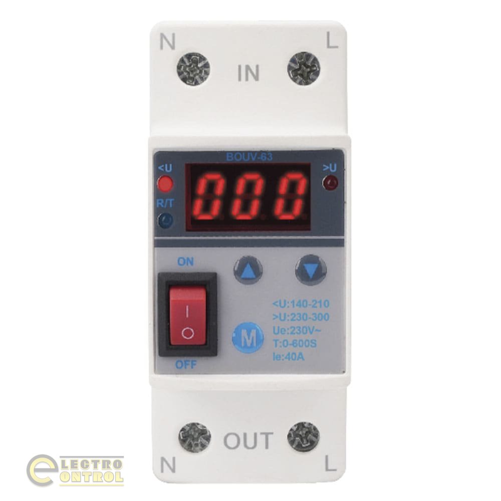 - осуществляет автоматический контроль напряжения в электросети, к которой оно подключено, и выполняет защитные отключения цепи при выходе измеряемого параметра за пределы программируемого диапазона (повышение сверх установленного верхнего предела и понижение ниже установленного нижнего предела);