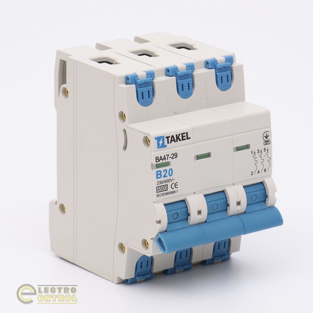 Автоматический выключатель Takel 506051 ВА47-29 В 3Р 4.5кА 20А