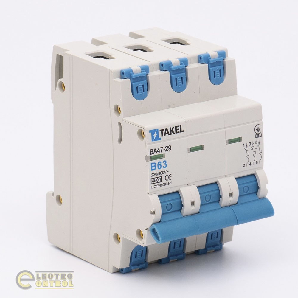 - Автоматический выключатель Takel 506056 ВА47-29 В 3Р 4.5кА 63А-