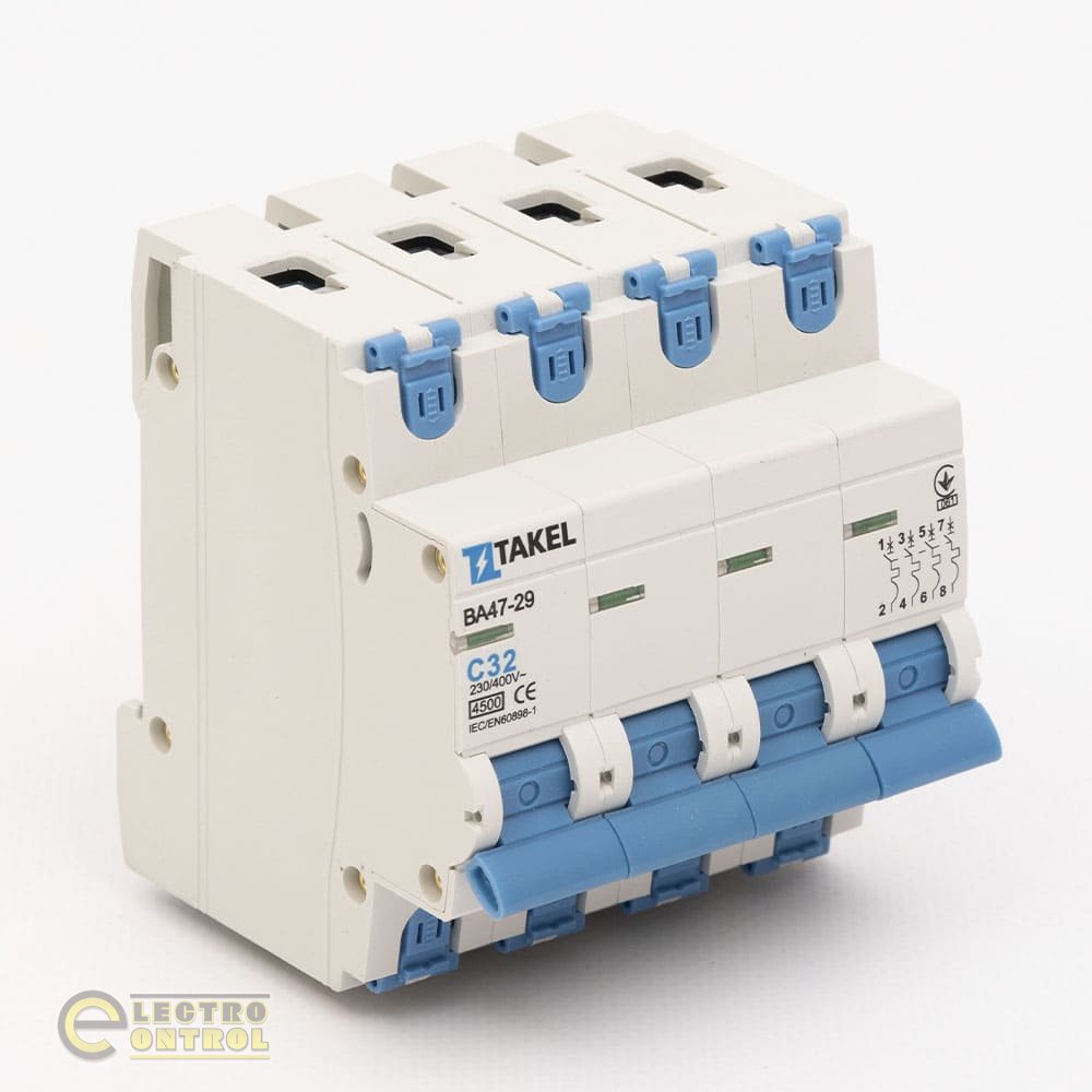 - Автоматический выключатель Takel 506172 ВА47-29 С 4Р 4.5кА 32А-