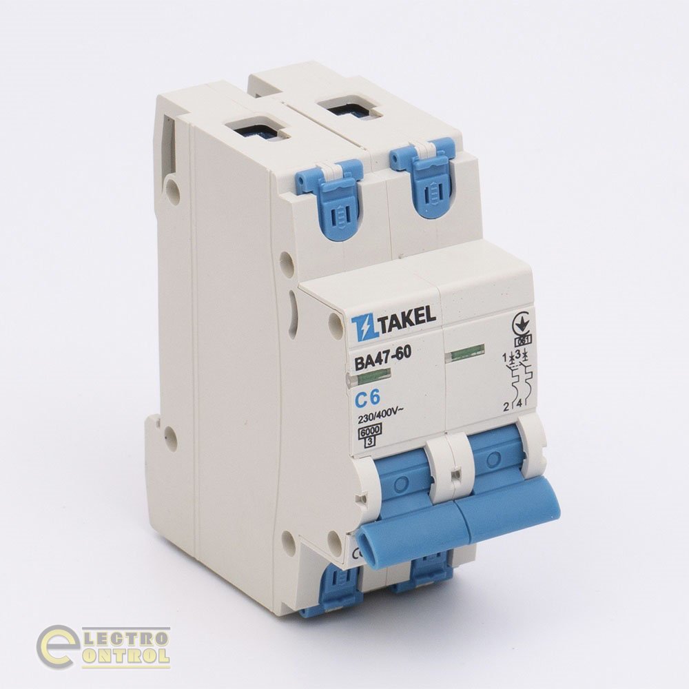Автоматический выключатель Takel 506619 ВА47-60 С 2Р 6А