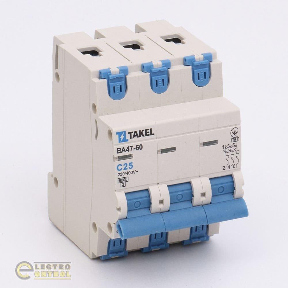 Автоматический выключатель Takel 506637 ВА47-60 С 3Р 25А