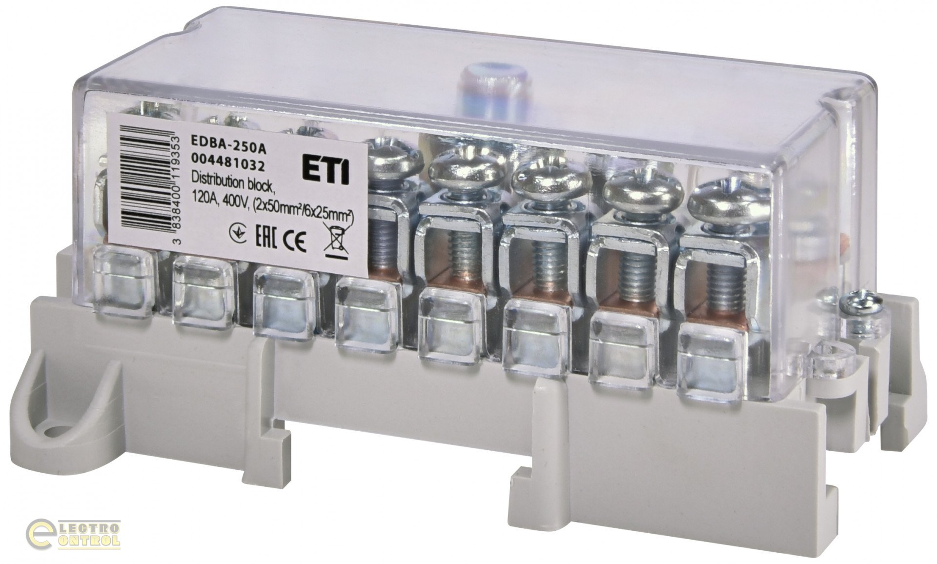 Блок распределительный ETI 4481032 EDBA-250A 250А 400В 1х120мм²/1х50мм²+8х25мм²