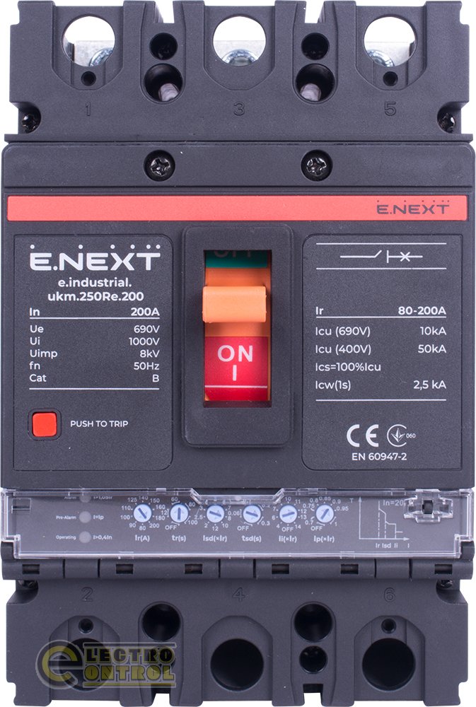 Силовой автоматический выключатель Enext i0770043 e.industrial.ukm.250Re.200 с электронным расцепителем 3р 200А