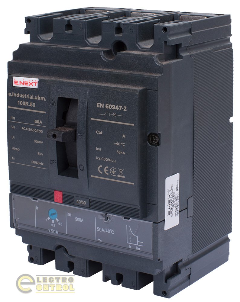 Силовой автоматический выключатель Enext i091002 e.industrial.ukm.100R.50 с регулировкой 3р 50А