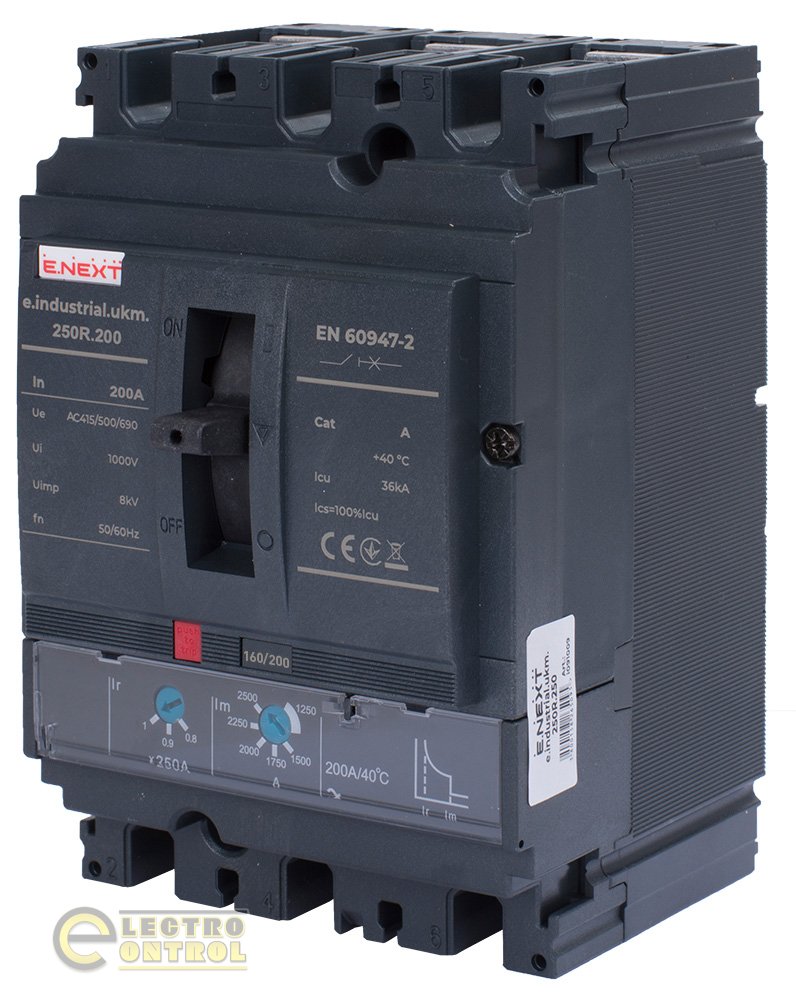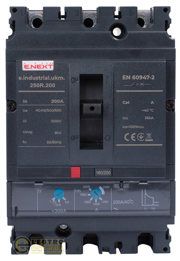 Силовой автоматический выключатель Enext i091008 e.industrial.ukm.250R.200 с регулировкой 3р 200А