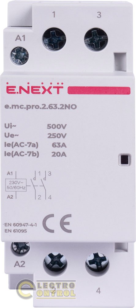 Модульный контактор Enext p005218 e.mc.pro.2.63.2NO 2р 63А 2NO 220В