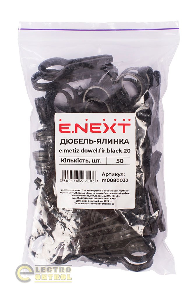 Дюбель - елочка Enext m0080032 20mm для круглого провода e.metiz.dowel.fir.black.20 чёрный 50 шт.
