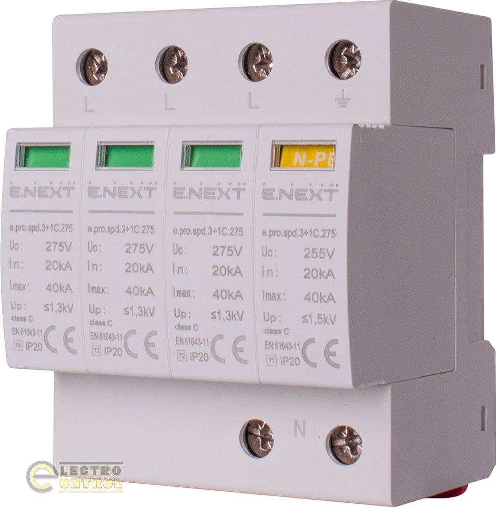 Описание Устройство для защиты от импульсных перенапряжений Enext p076016 e.pro.spd.3+1C.275 3P+NPE класс С