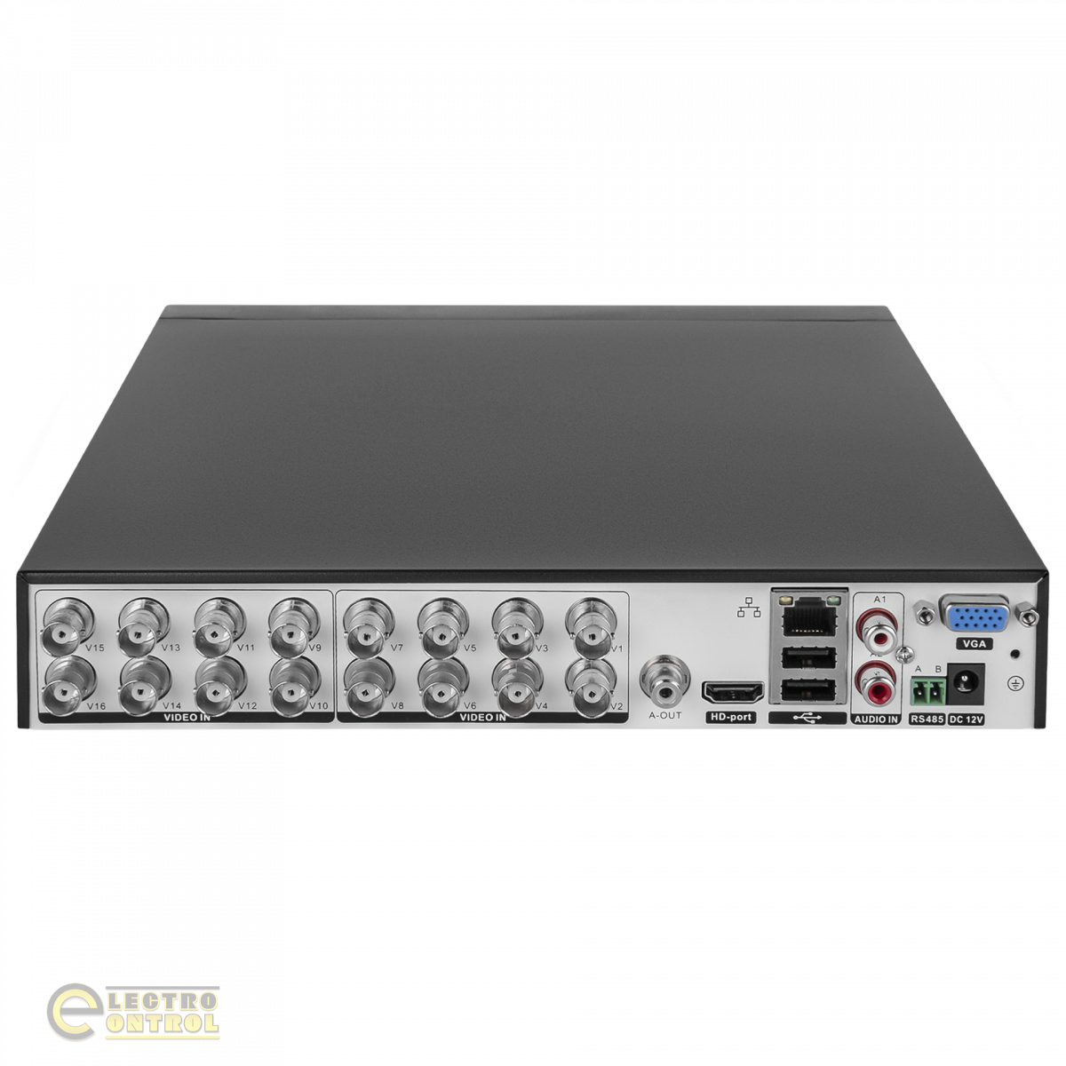 Тип - GHD; Тип поддерживаемых камер - AHD, TVI, CVI, Аналог CVBS, IP; Количество подключаемых камер - 16 шт; Разрешение - 2560x1944; Количество мегапикселей - 1, 1.3, 1.4, 2, 2.1, 2.4, 3, 4, 5; Видеовыход - VGA, HDMI (MAX 4K); Процессор - 00000; Кол-во поддерживаемых HDD - 1 шт; Максимальный объем HDD - 6 ТВ; Сжатие видео - H.264, H.265; Аудиовход - 2 (RCA); Аудиовыход - 1 (RCA); Ethernet LAN - 10/100 Mbit; Управление поворотными камерами - есть; Питание - 12V 2000 mA; Рабочая температура - 0 ~ +55; Материал корпуса - металл.
