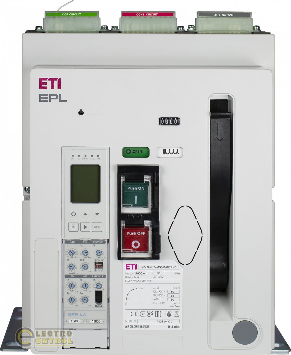 Воздушный автоматический выключатель ETI 4695721 стационарный EPL-20 3H BF/M2C2S2/PR-LP 3P 2000A Fix Frame "B" 85kA
