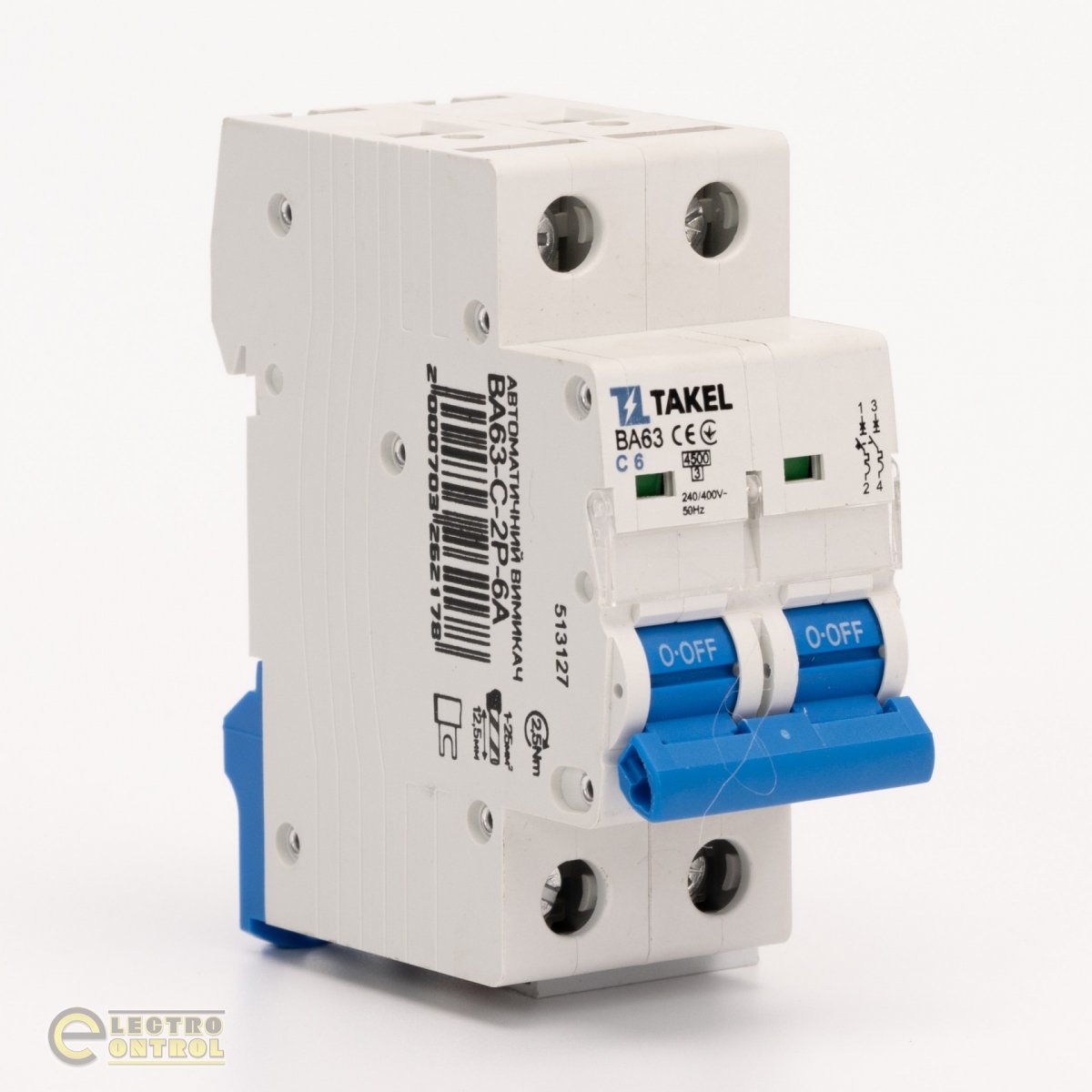 Автоматический выключатель Takel 513127 ВА63 C 2Р 6А