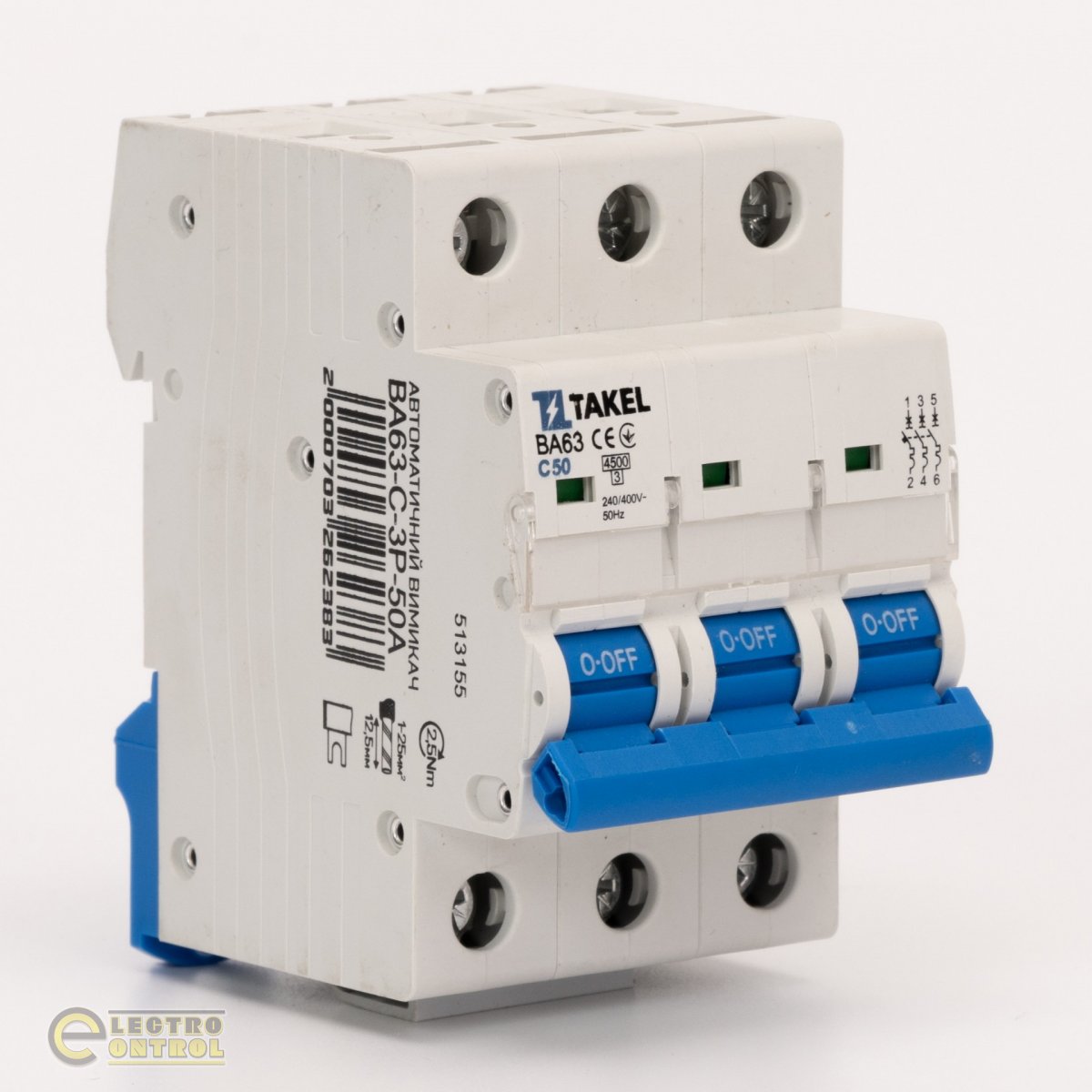 Автоматический выключатель Takel 513155 ВА63 C 3Р 50А