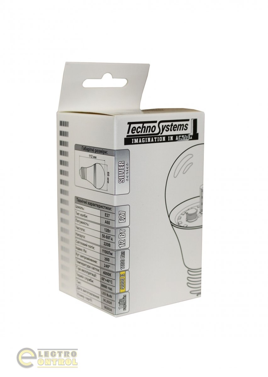 Светодиодная лампа TechnoSystems LED Bulb SILVER 12W TNSy5000604 E27 4000K 1100 lm TNSy5000604 A60