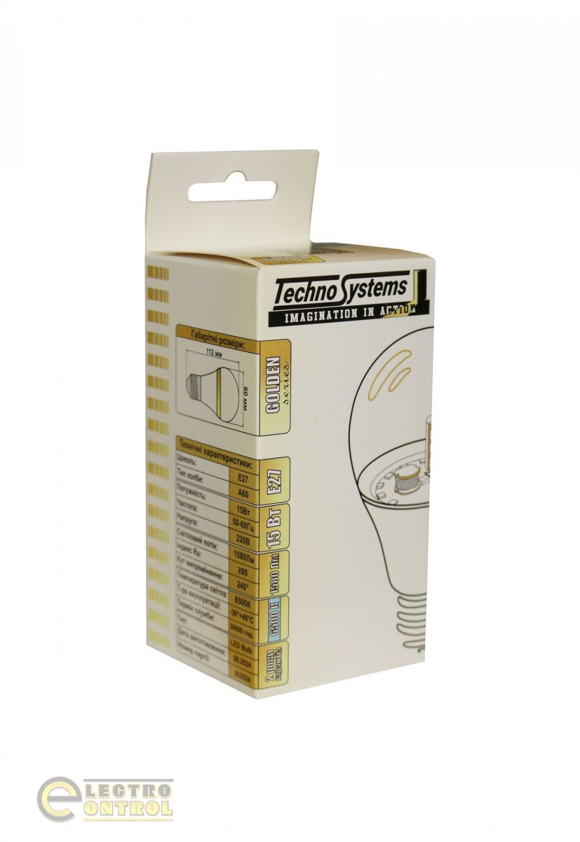 Светодиодная лампа TechnoSystems LED Bulb GOLDEN 15W TNSy5000256 E27 6500K 1580 lm A60 220-240V/50-60Hz 240° 30.000 Hrs