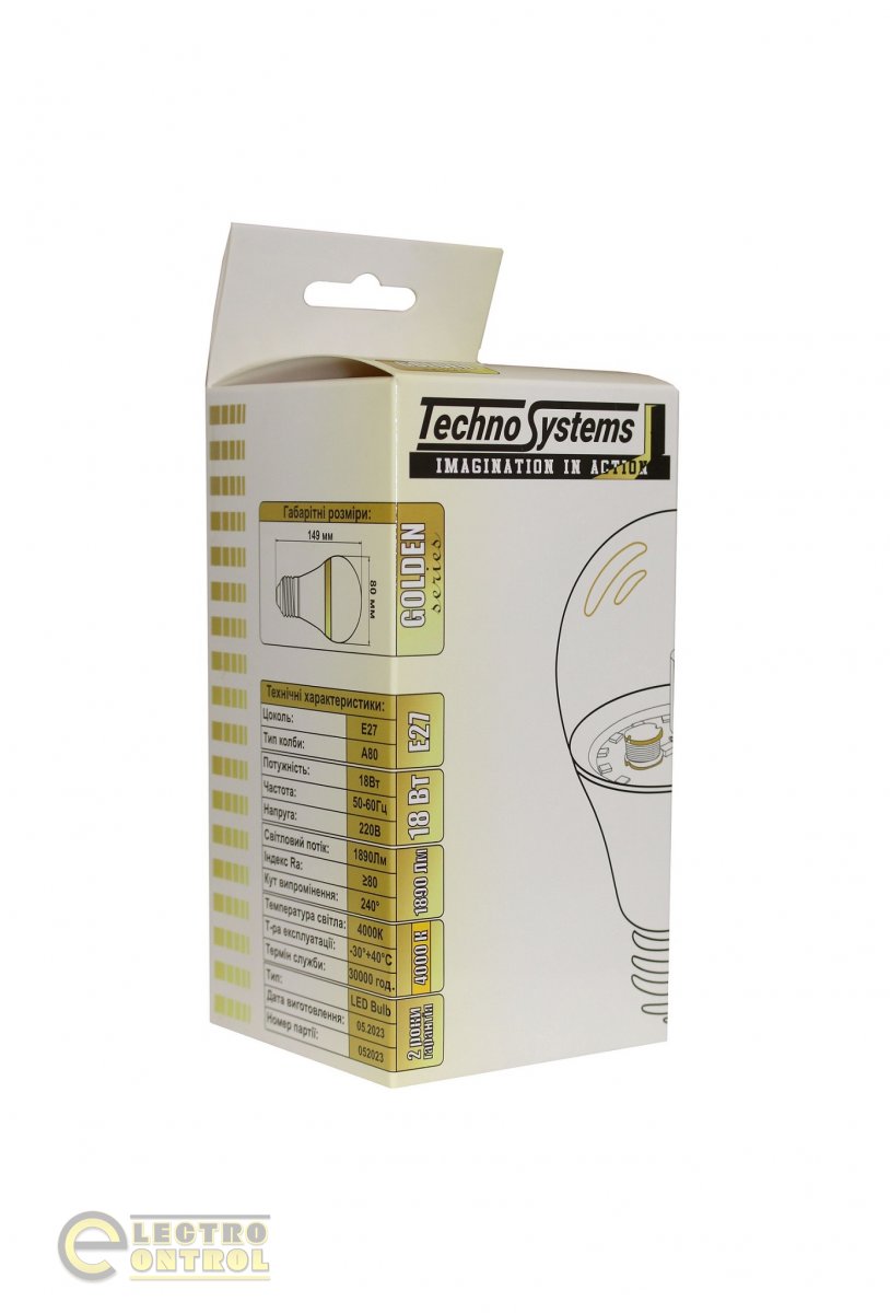 Светодиодная лампа TechnoSystems LED Bulb GOLDEN 18W TNSy5000043 E27 4000K 1620 lm A80 180-240V/50-60Hz 240° 30.000 Hrs