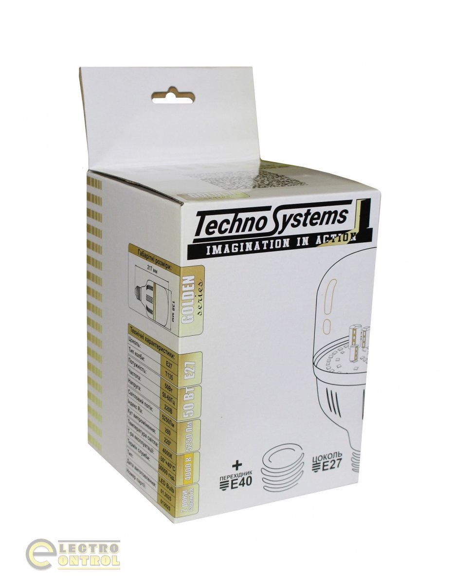 Светодиодная лампа TechnoSystems LED Bulb GOLDEN 50W TNSy5000261 E27/E40 4000K 5250 lm T140 220-240V/50-60Hz 220° 30.000 Hrs