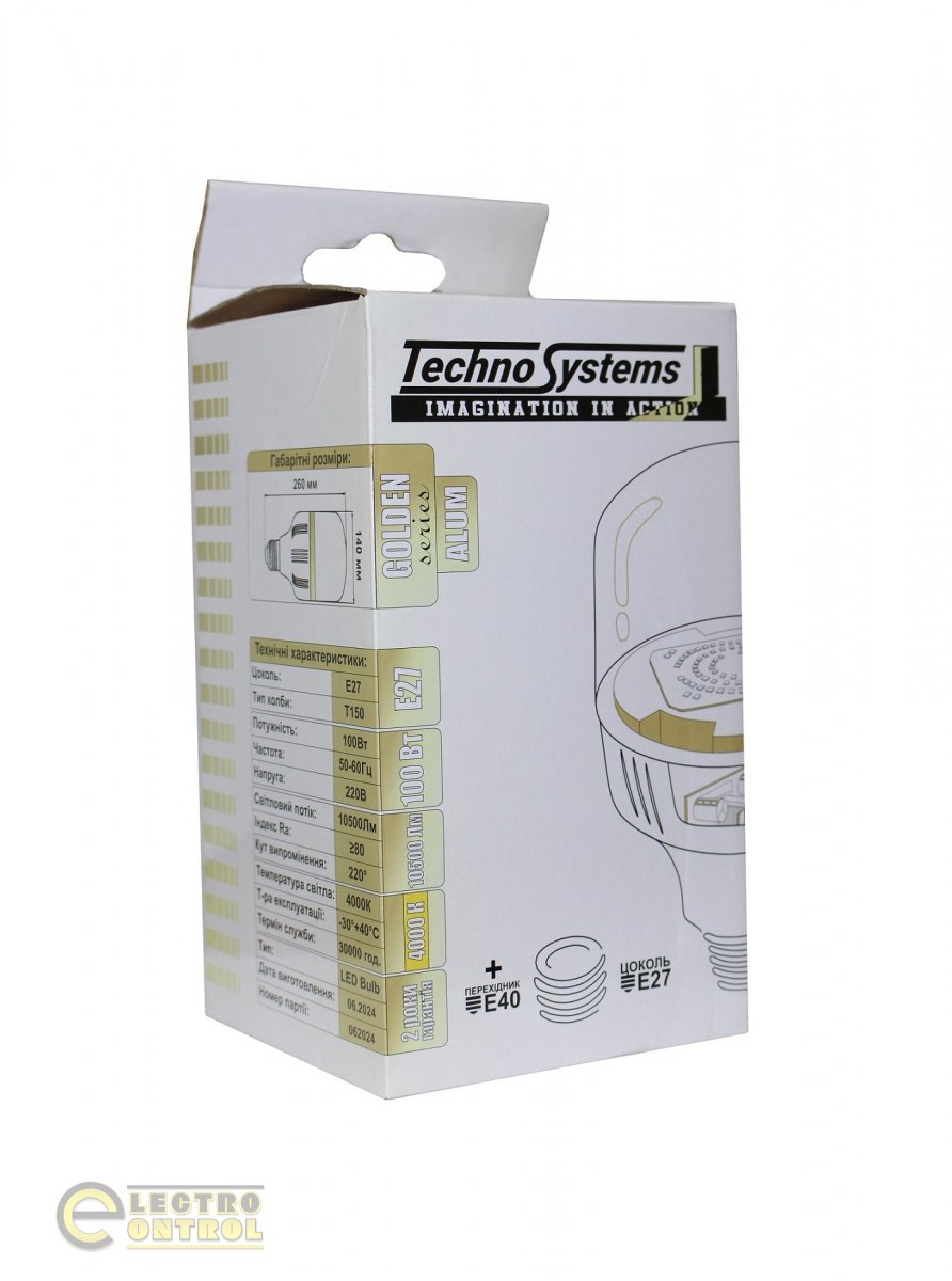- Светодиодная лампа TechnoSystems LED Bulb GOLDEN ALUM 100W TNSy5000525 E27/E40 4000K 10500 lm T140 220-240V/50-60Hz 220° 30.000 Hrs-