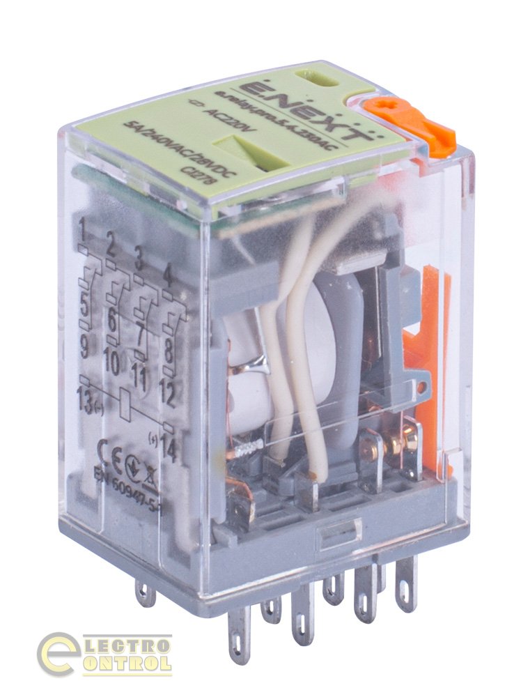 Реле промежуточное Enext p091007 e.relay.pro.5.4.230AC 5А 4 группы контактов катушка 230В АC