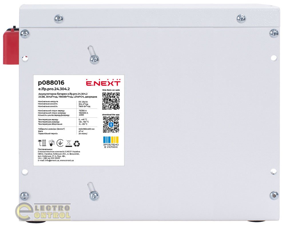 Аккумуляторная батарея Enext p088016 e.lfp.pro.24.304.2 25.6В 304А/ч 7800Вт/ч LiFePO4 двухрядная