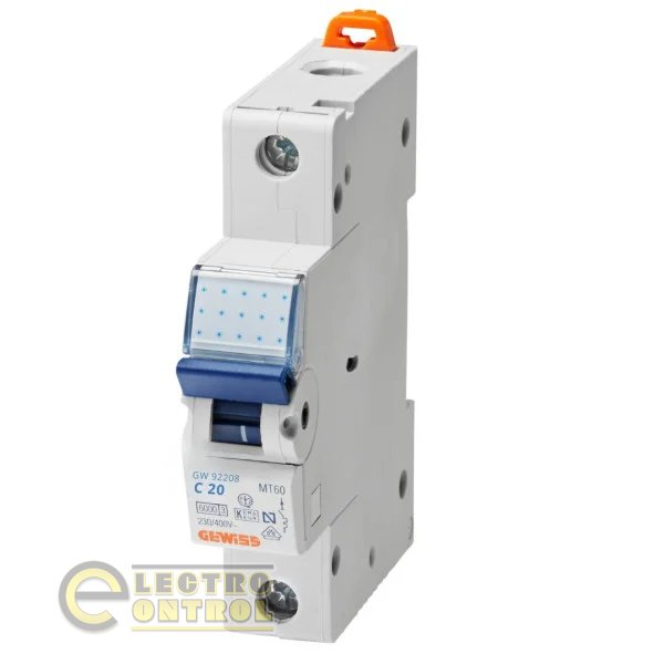 Автоматический выключатель Gewiss GW92208 МТ60 1P B 20А 6кA