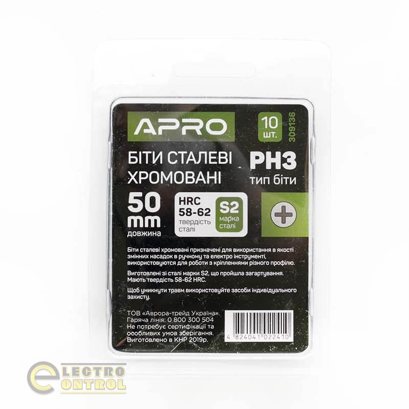 Бита APRO PH3*50мм 309136 хром, (10шт/уп)