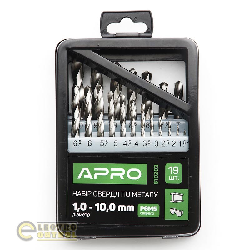 Набор сверл по металлу APRO Р6М5 810203 1,0-10,0мм 19шт метал бокс
