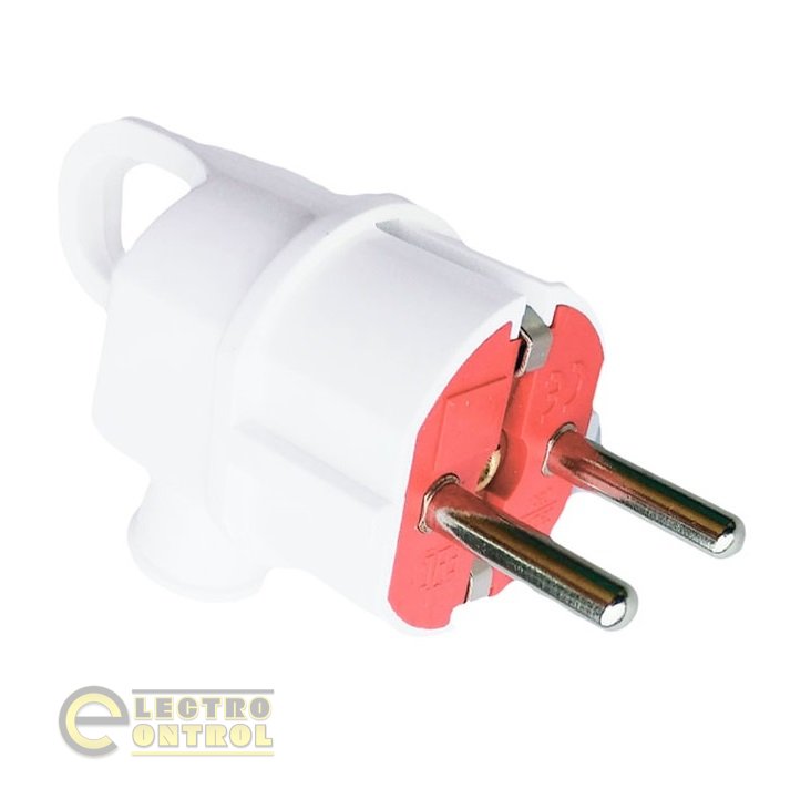 Вилка В 16 евро с заземлением Technosystems белая угловая кольцевая 10А TNSy5000070