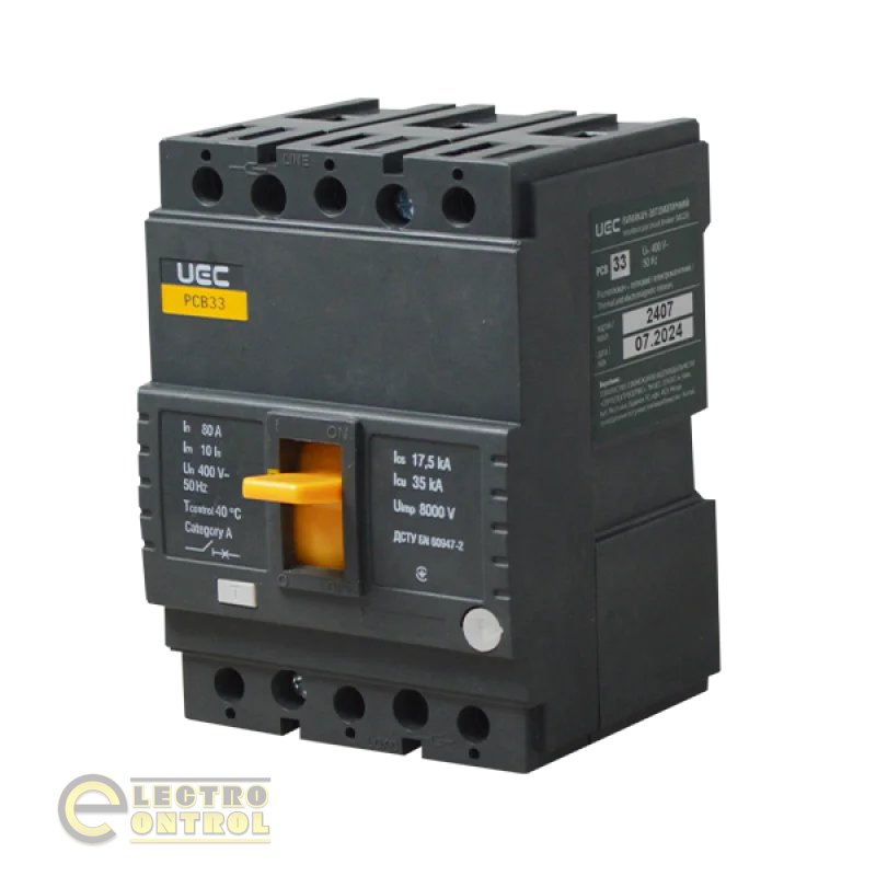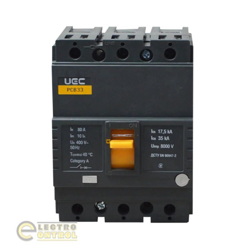 - Автоматический выключатель UEC MCCB-PCB-33-3-0080 PCB33 3Р 80А 35кА-