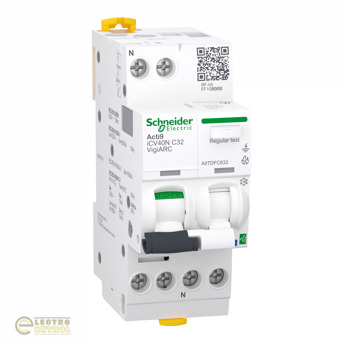 Устройство защиты от дугового замыкания с функцией автоматического выключателя дифференциального тока Schneider-Electric A9TDFC632 Acti9 Active iCV40N VigiARC 1P+N 32A C 30мА A-SI