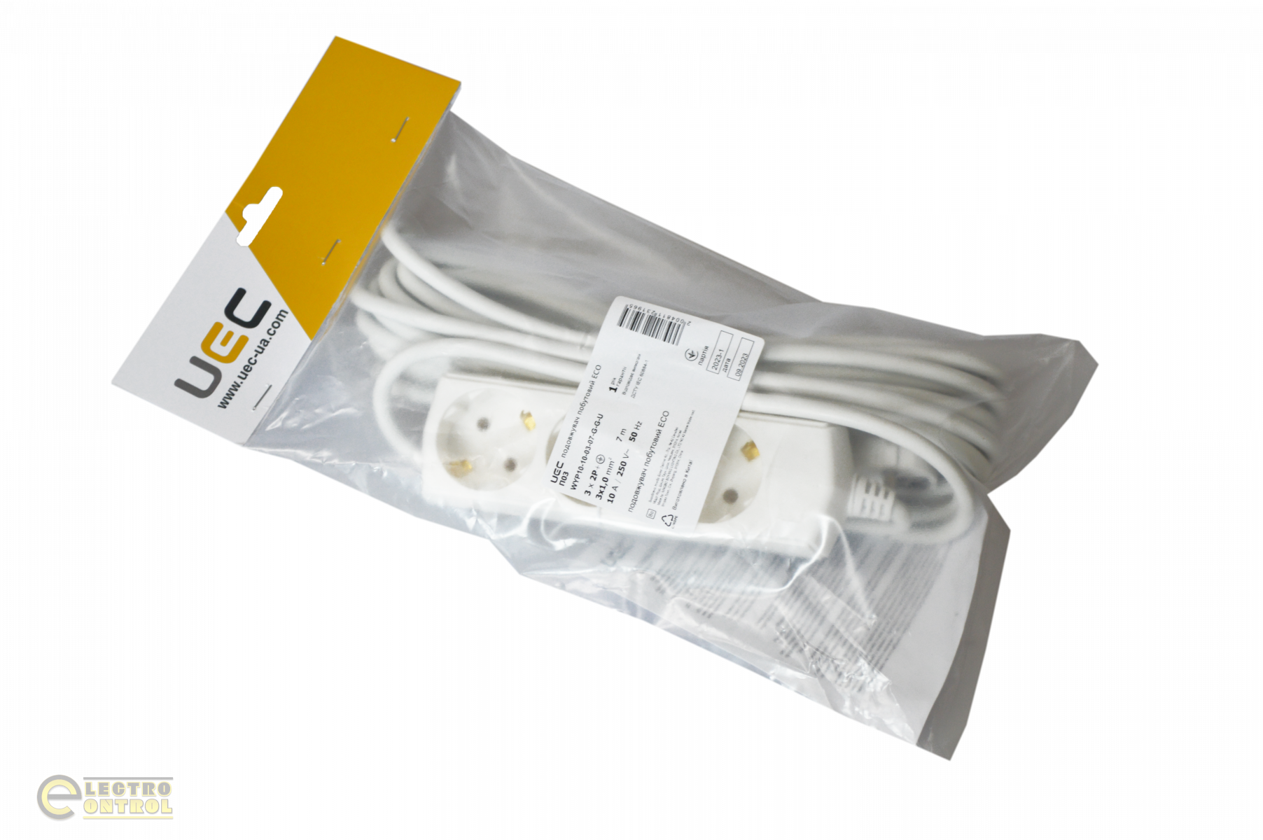 Удлинитель UEC WYP10-10-03-07-G-G-U ECO П03 3 места 2P+PE 7м 3х1мм2 10А 250В