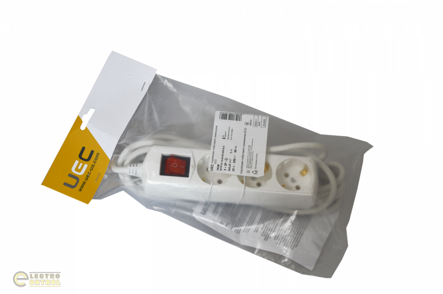 Удлинитель UEC WYP10-10-03-05-GS-G-U ECO П03В 3 места 2P+PE 5м 3х1мм2 10А 250В с выключателем