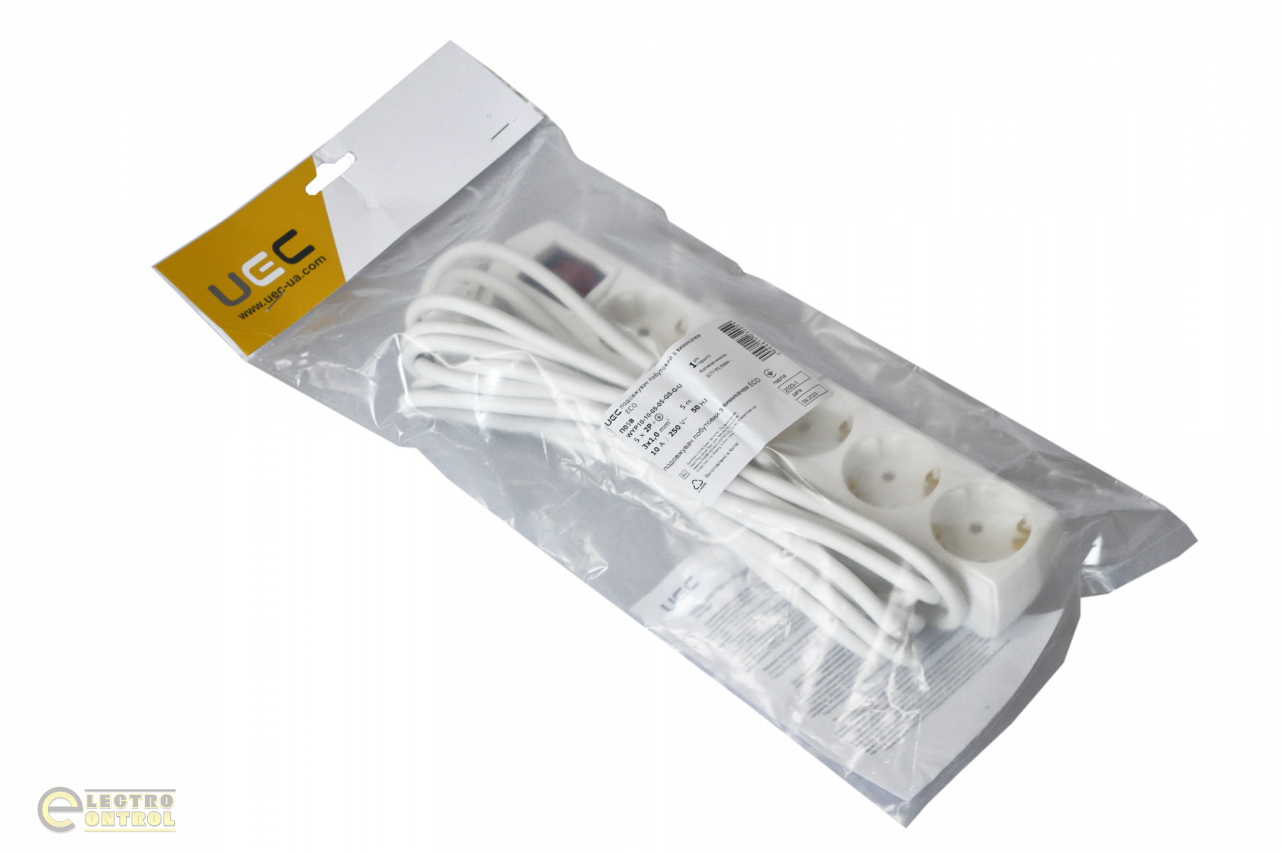 Удлинитель UEC WYP10-10-05-05-GS-G-U ECO П05В 5 мест 2P+PE 5м 3х1мм2 10А 250В с выключателем