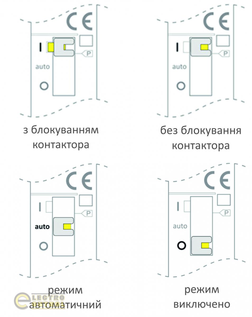монтажа/обслуживания. Принцип работы контактора ST63-40-МРабота контактора зависит от настройки переключателя режимов работы:Позиция «I» (верхняя позиция)Если
