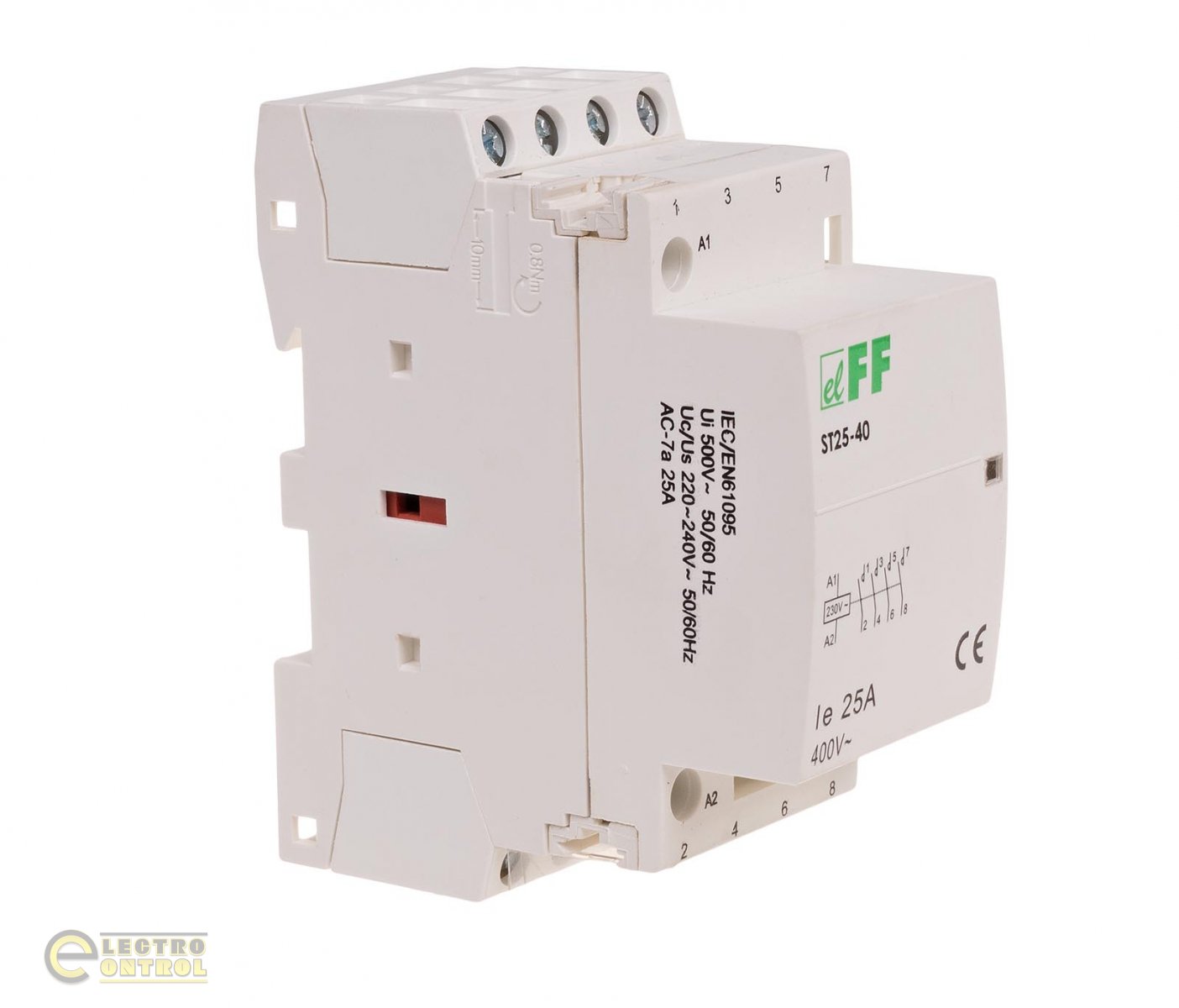 Назначение: электромагнитные контакторы в модульных корпусах для непосредственного монтажа на DIN-рейке. Действие: подача напряжения питания на катушку контактора вызывает переключение контактов. Включение контактора сигнализируется появлением красного флажка в окошке. После исчезновения напряжения питания контакты возвращаются в исходное положение.