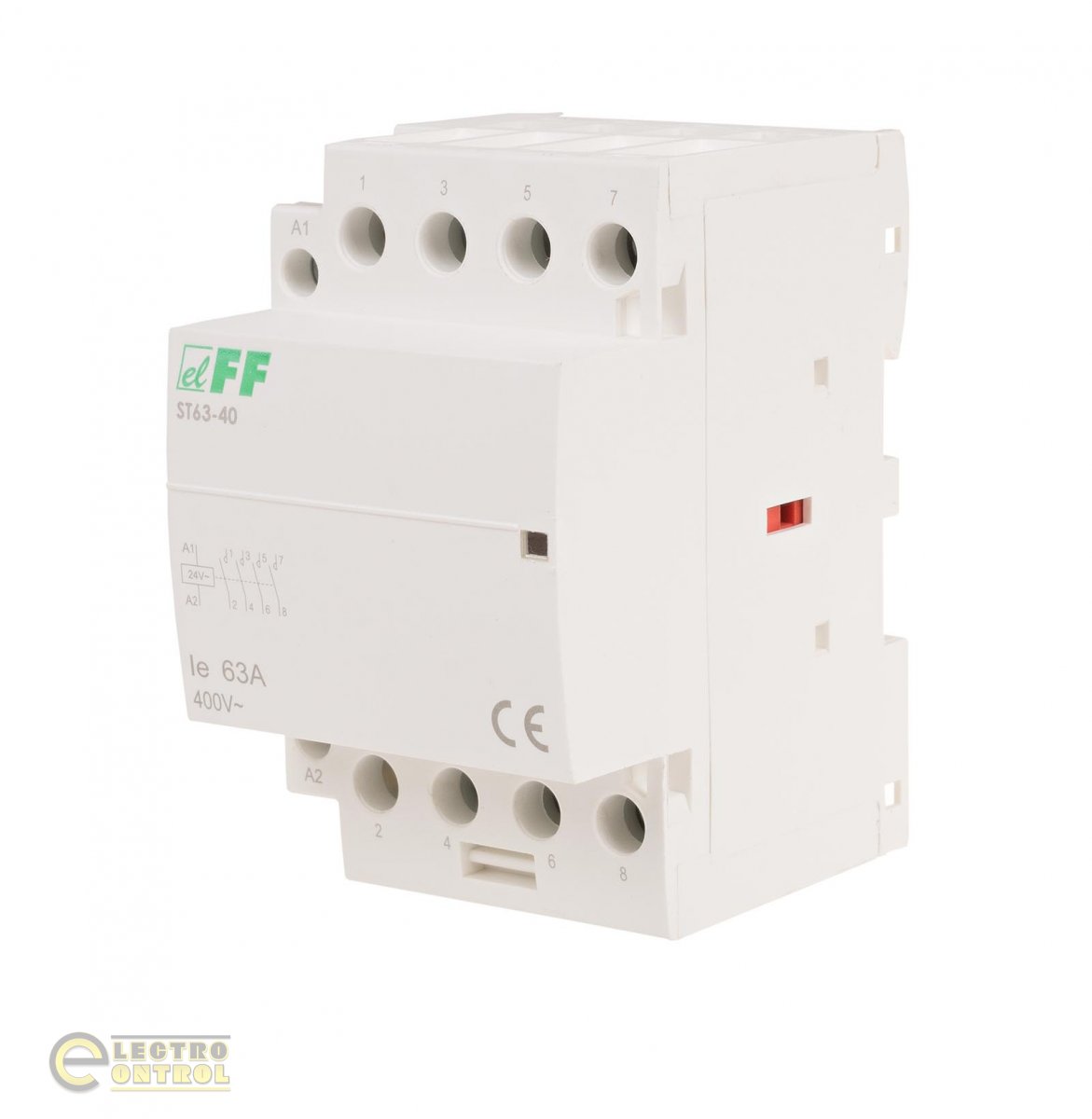 Контактор модульный. Ток 63 А. Напряжение 230 В AC. Коммутируемая нагрузка AC-1 24 кВт. Коммутируемая нагрузка - AC-3 8,5 кВт. Контактор электромагнитный монтажа на din-рейку 35 мм.