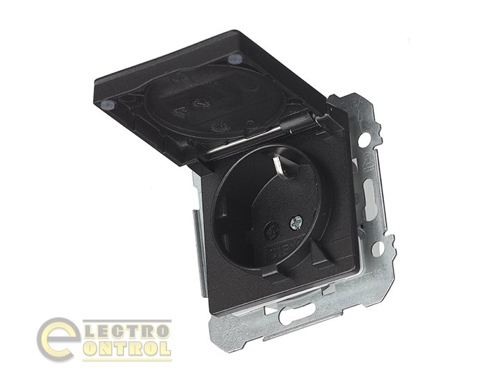 Розетка SIEMENS 10813CM одинарная с крышкой 2P+Z ШУКО LINE 16А 250V карбон