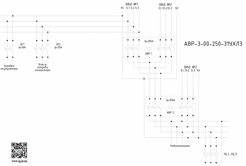 Схема управления автоматическим вводом резерва АВР-400-3.0-250А медь: