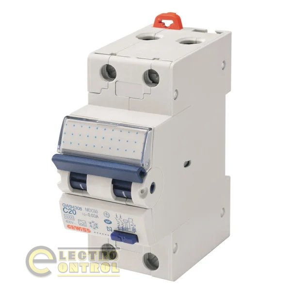 Дифференциальный автоматический выключатель Gewiss GW94308 MDC60 1P+N C20 6кA A/0.03 2M