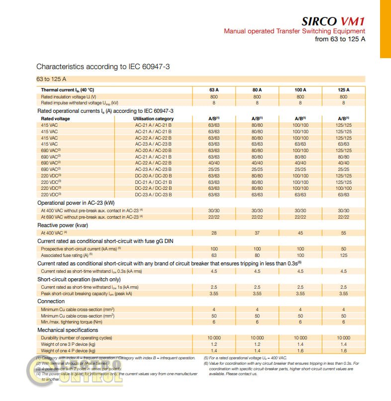 Переключатели SIRCO VM1 реализуют схему работы I-0-II (Источник 1 – Отключено – Источник 2) с фиксацией в каждом положении. Это исключает возможность одновременного включения двух источников (встречного тока). Устройства подходят для коммутации смешанных и индуктивных нагрузок, а также могут использоваться для инверсии источников (например, изменения направления вращения двигателя) или заземления.