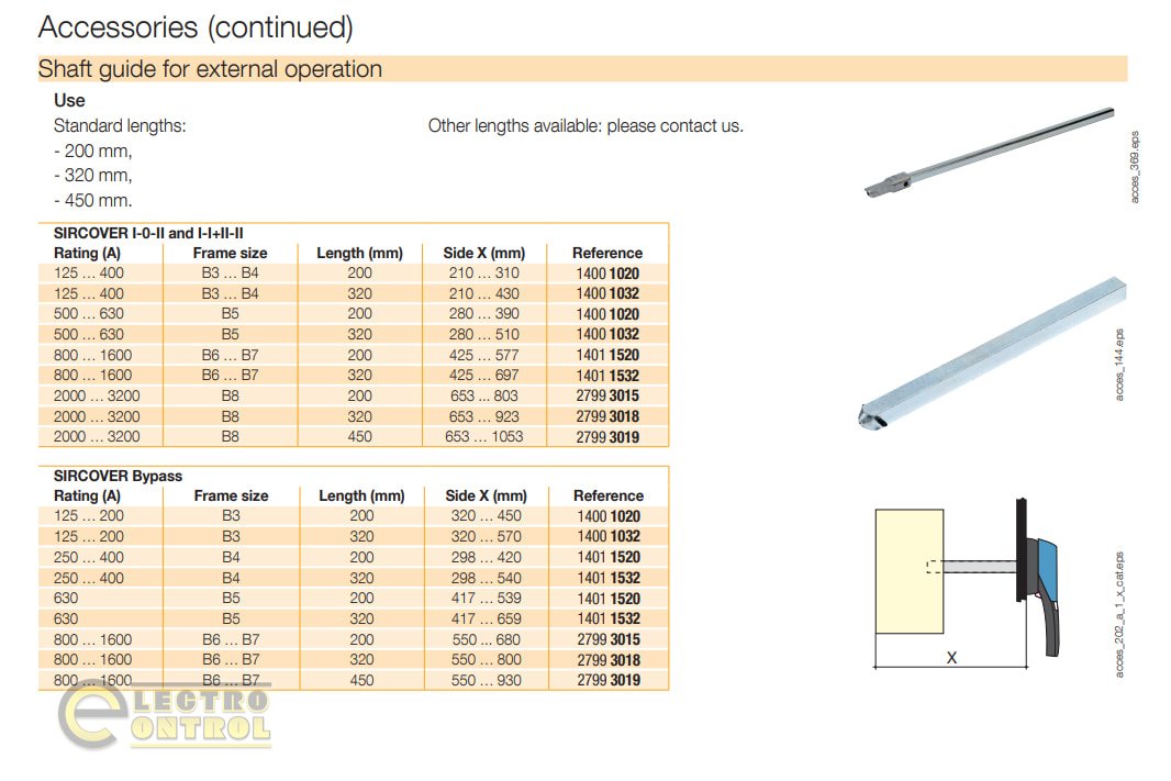 Удлинительный шток (штанга) длиной 320 мм (сечение 10х10 мм) для выносного фронтального управления. Совместим с переключателями SIRCOVER и SIRCO номиналом 125–630 А (габариты B3–B5). Обеспечивает соединение аппарата с выносной рукояткой на двери шкафа.