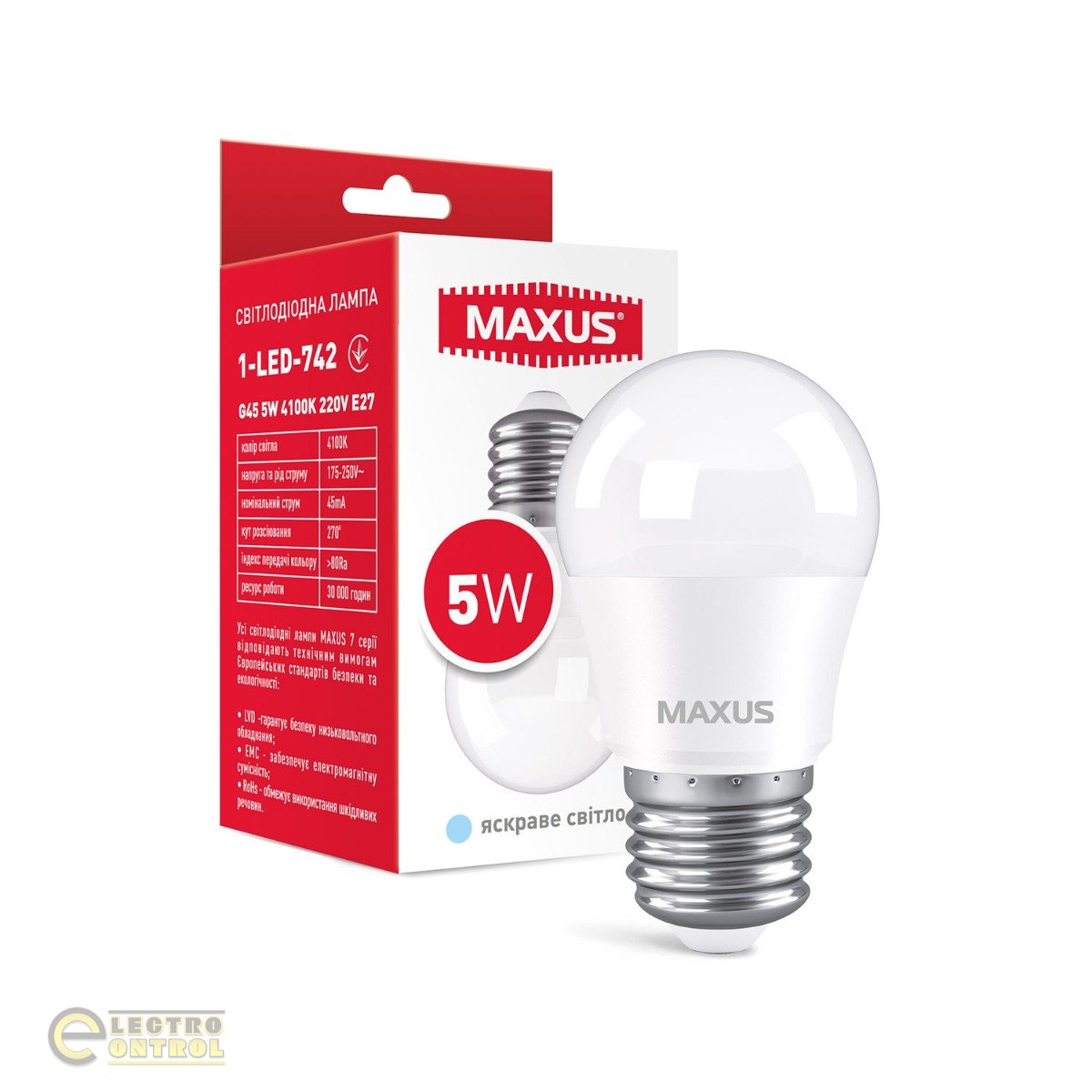 Лампа светодиодная MAXUS 1-LED-742 G45 5W 4100K 220V E27