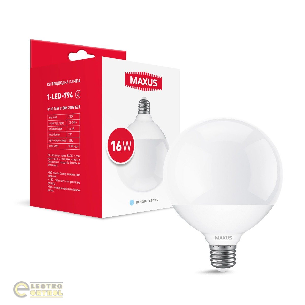 Лампа светодиодная MAXUS 1-LED-794 G110 16W 4100K 220V E27